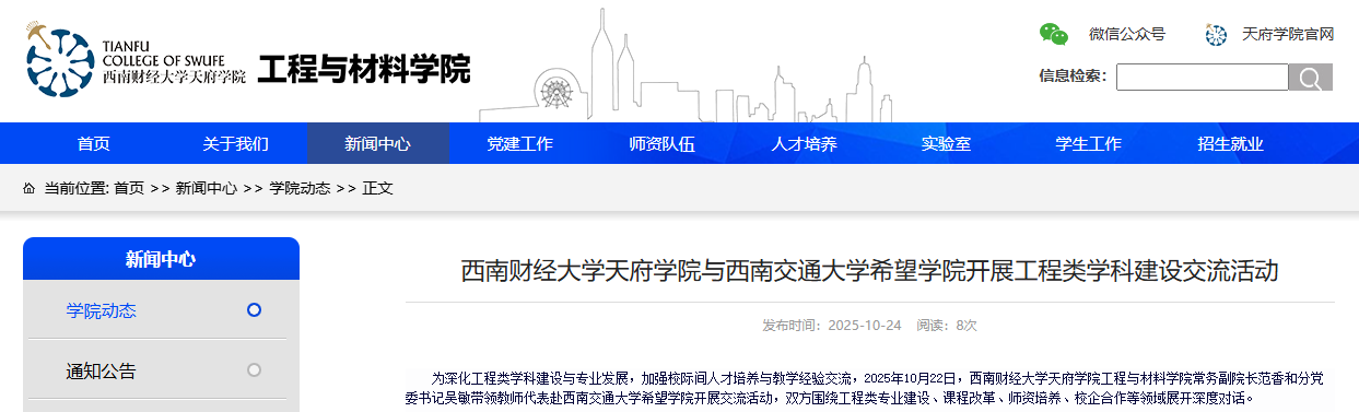 10月22日,西南財(cái)經(jīng)大學(xué)天府學(xué)院工程與材料學(xué)院赴西南交通大學(xué)希望學(xué)院開展交流活動(dòng),以深化工程類學(xué)科建設(shè)與專業(yè)發(fā)展。西南財(cái)經(jīng)大學(xué)天府學(xué)院在介紹其發(fā)展規(guī)劃時(shí)提到:學(xué)科布局上,將工程與材料學(xué)科劃分為4個(gè)系,設(shè)置9個(gè)專業(yè),停招建筑學(xué)等適配度較低專業(yè),工造專業(yè)目前正在進(jìn)行專業(yè)認(rèn)證準(zhǔn)備工作;人才培養(yǎng)模式獨(dú)具特色,推行“大班+中班+小班”分層教學(xué),以任務(wù)包為載體培養(yǎng)多能力融合人才。