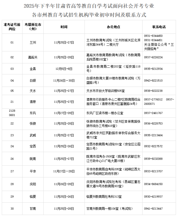 2025年下半年甘肅自考面向社會開考專業(yè)畢業(yè)初審公告