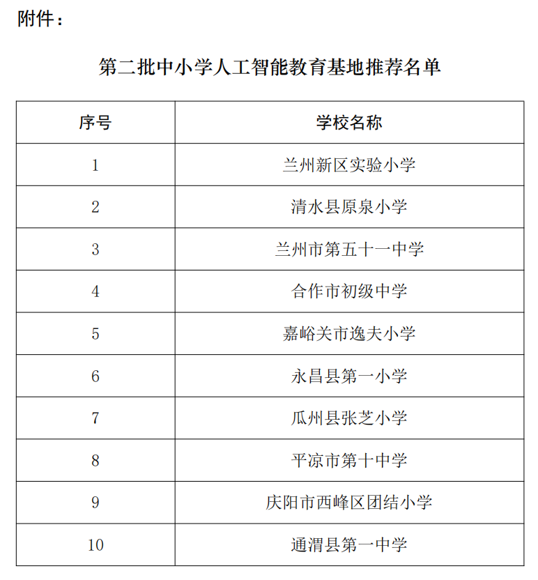 附件:第二批中小學(xué)人工智能教育基地推薦名單