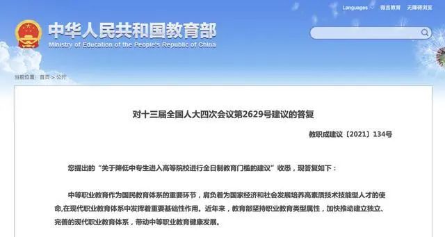 降低中專(zhuān)生上大學(xué)門(mén)檻?教育部這樣答復(fù)
