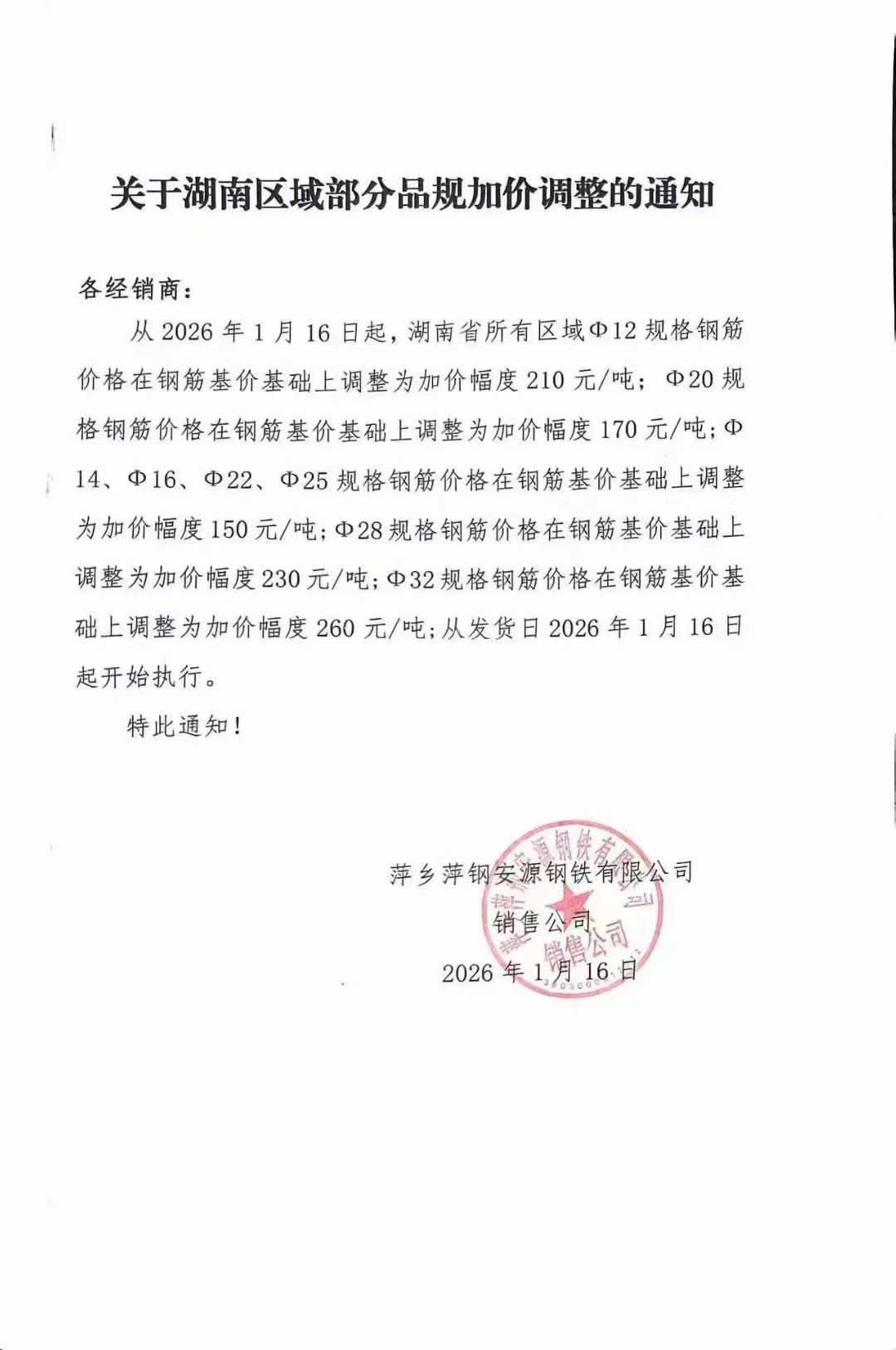 · 2026-01-13新疆和鋼工業(yè)銷售部調(diào)價信息