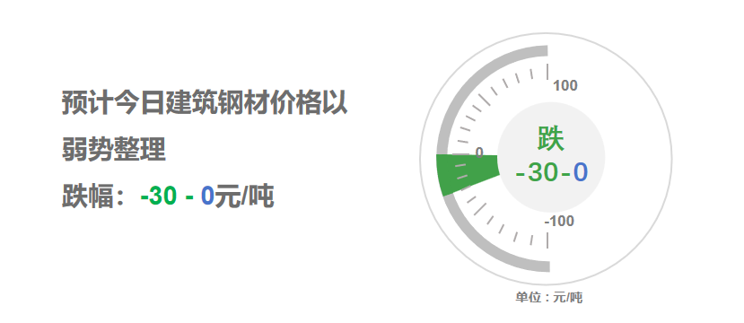 上周五開市,早盤期螺先揚(yáng)后抑,部分鋼企價格上調(diào),終端用戶按需采購;午后盤面窄幅波動,鋼坯市場價格平穩(wěn),多地建筑鋼材收市價以穩(wěn)為主。夜盤期螺弱勢調(diào)整,周末鋼坯小幅見跌,寒潮來襲多地雨雪,終端需求愈加清淡,市場操作謹(jǐn)慎,預(yù)計(jì),今日全國大部建筑鋼材價格弱勢整理,幅度-30-0?!疽走B資訊提供】