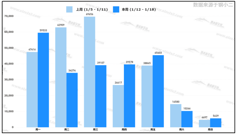 據(jù)鋼小二平臺樣本數(shù)據(jù),1月16日采樣全國工程需求量為45,403噸,較上個交易日增加14%。