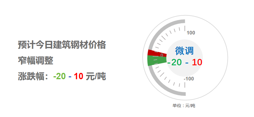 昨日開(kāi)市,早盤(pán)期螺區(qū)間波動(dòng),多數(shù)鋼企維持平盤(pán),終端用戶按需采購(gòu);午后盤(pán)面震蕩見(jiàn)跌,鋼坯市場(chǎng)價(jià)格平穩(wěn),多地建筑鋼材收市價(jià)以穩(wěn)為主。夜盤(pán)期螺偏弱整理,多空雙方博弈激烈,表觀需求環(huán)比增加,社會(huì)資源延續(xù)降庫(kù),市場(chǎng)操作相對(duì)謹(jǐn)慎,預(yù)計(jì),今日全國(guó)大部建筑鋼材價(jià)格窄幅調(diào)整,幅度-20-10?!疽走B資訊提供】