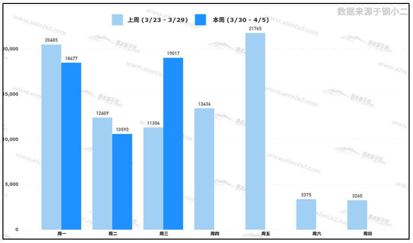 據(jù)鋼小二平臺(tái)樣本數(shù)據(jù),4月1日采樣全國(guó)工程需求量為19,017噸,較上一個(gè)交易日環(huán)比明顯增加。