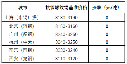 今日行情為平盤等待,據(jù)西本跟蹤統(tǒng)計(jì)的69個(gè)城市建材報(bào)價(jià),開盤74%市場(chǎng)持平,少數(shù)市場(chǎng)小幅漲跌,午后基本穩(wěn)定;截至收盤,上海、杭州、南京等地主導(dǎo)資源價(jià)格環(huán)比變化0-10元/噸。據(jù)上海市場(chǎng)反饋,今天庫提小廠抗震螺紋鋼高低區(qū)間在3090-3120元,廠提永鋼螺紋鋼基價(jià)區(qū)間在3150-3160元/噸。