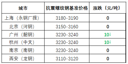 截至午間,國內(nèi)部分市場螺紋鋼(抗震)基價如下:上海市場3170-3180元/噸;北京市場3150-3160元/噸;廣州市場3230-3240元/噸;杭州市場3230-3240元/噸;南京市場3230-3240元/噸;西安市場3110-3120元/噸。環(huán)比來看,截至午間收盤,全國主要市場一線品牌價格有穩(wěn)有降。