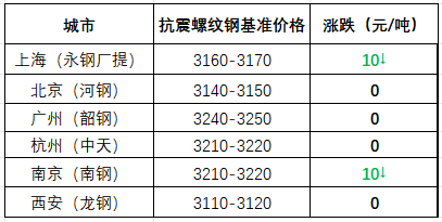 截至午間,國內(nèi)部分市場螺紋鋼(抗震)基價(jià)如下:上海市場3160-3170元/噸;北京市場3140-3150元/噸;廣州市場3240-3250元/噸;杭州市場3210-3220元/噸;南京市場3210-3220元/噸;西安市場3110-3120元/噸。環(huán)比來看,截至午間收盤,全國主要市場一線品牌價(jià)格多數(shù)盤整,少數(shù)調(diào)低。