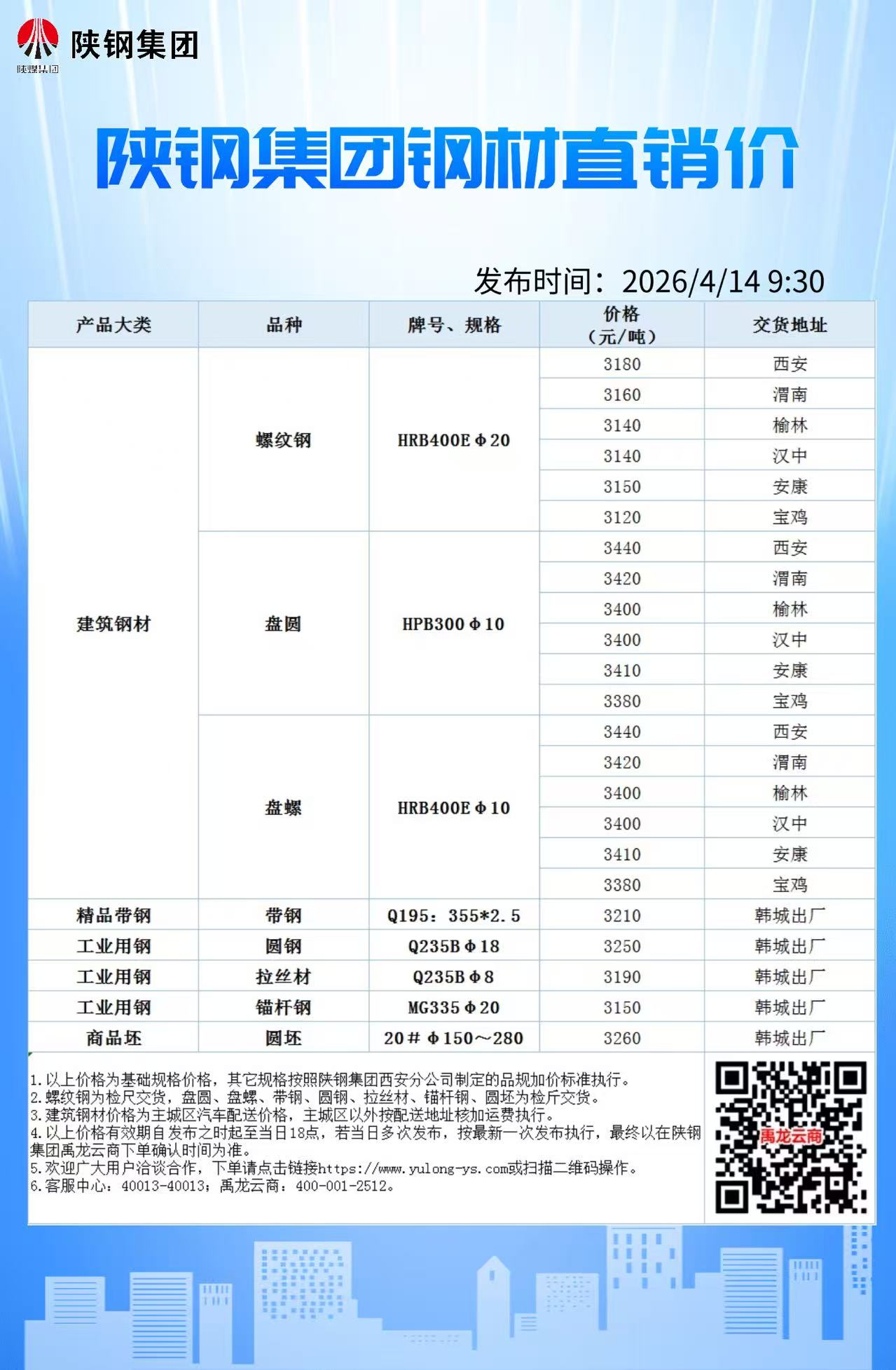 摘要:4月14日陜鋼集團(tuán)鋼材直銷價(jià)格信息