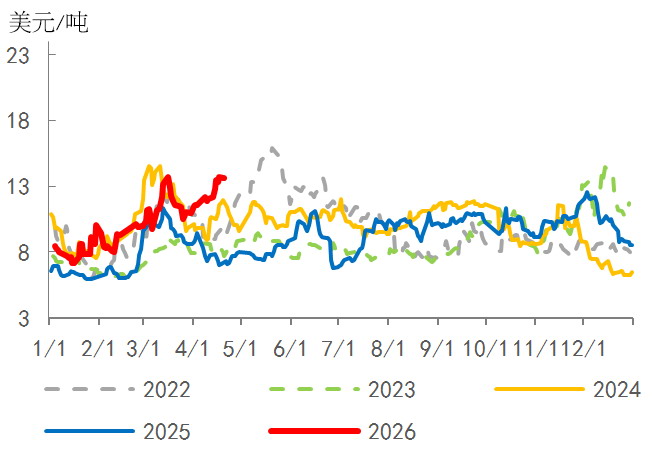 中東戰(zhàn)事爆發(fā)以來,霍爾木茲海峽航運(yùn)持續(xù)受阻,全球能源價(jià)格因供應(yīng)短缺而大幅上漲。能源供應(yīng)短缺與價(jià)格上漲開始逐步向產(chǎn)業(yè)鏈下游傳導(dǎo)。近期,澳大利亞柴油短缺問題持續(xù)發(fā)酵。澳大利亞采礦業(yè)是柴油的第一大消耗行業(yè),每年消耗96億~100億升柴油,約占全國總消耗的35%。其中,鐵礦石開采約占采礦業(yè)柴油總消耗的26%。在鐵礦石直接現(xiàn)金成本中,柴油等燃料通常占9%~12%。柴油供應(yīng)短缺直接導(dǎo)致全球采礦業(yè)生產(chǎn)成本曲線顯著抬升。鐵礦石生產(chǎn)和運(yùn)輸環(huán)節(jié)高度依賴柴油,因此對(duì)柴油價(jià)格變動(dòng)非常敏感。